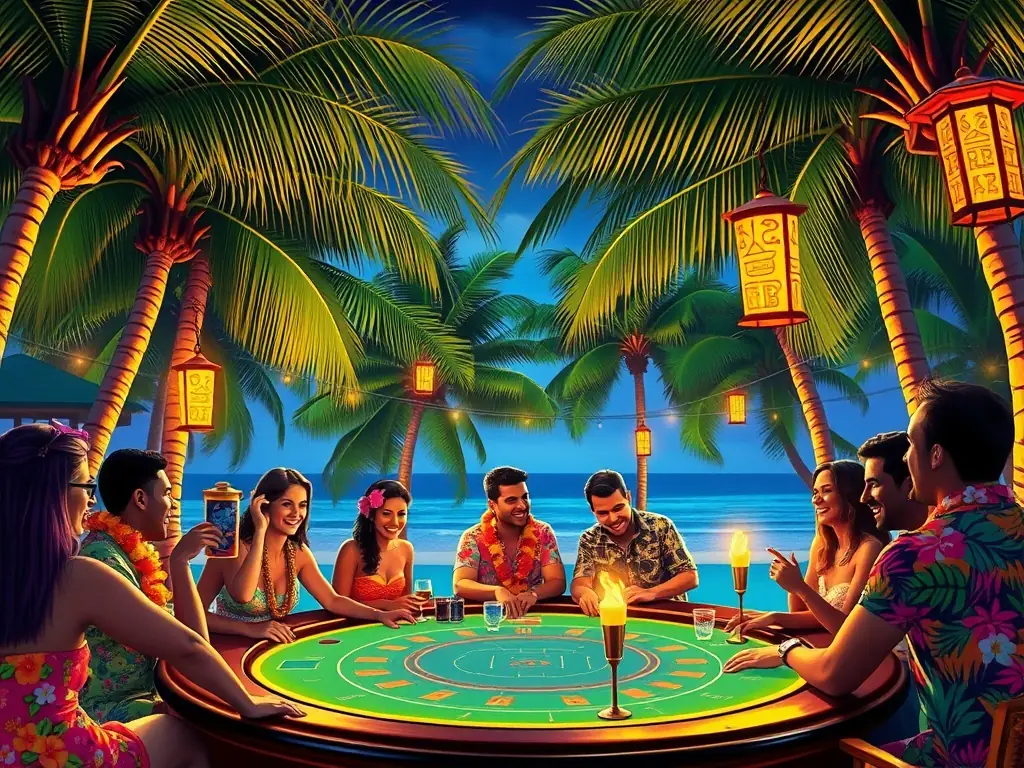 Step into a vibrant tropical paradise with our immersive Luau-themed casino night, where the spirit of Hawaii comes alive in every detail. Picture yourself surrounded by the warm glow of tiki torches, the soothing rhythm of gentle ocean waves, and the enchanting melodies of authentic Hawaiian music that set the tone for an unforgettable evening.
